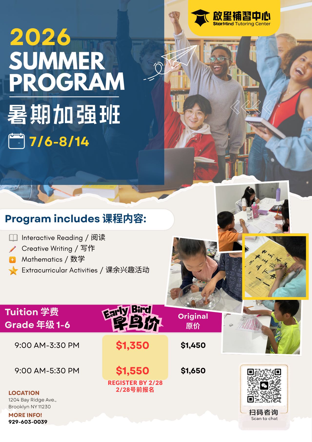 Register now at Starmind Tutoring Center to save for the Brooklyn Location HW Club and invest in your child's education through our focus on early childhood education!